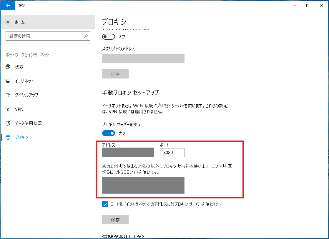 プロキシ サーバー: xxxxxxxxxx.jp:8080