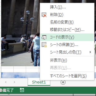 画像が貼られているシートを右クリックして「コードを表示」を選択します。