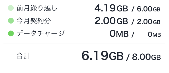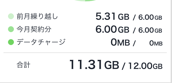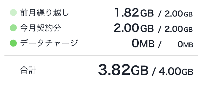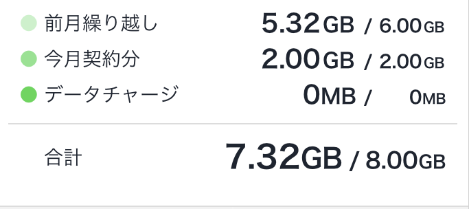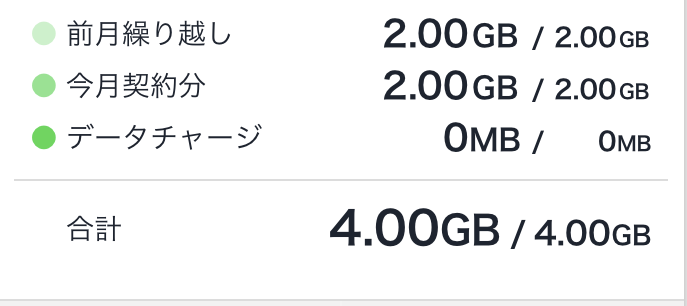 家に帰ったらWi-Fiがあるので平日は1日100Mも使わないような生活をしてます。