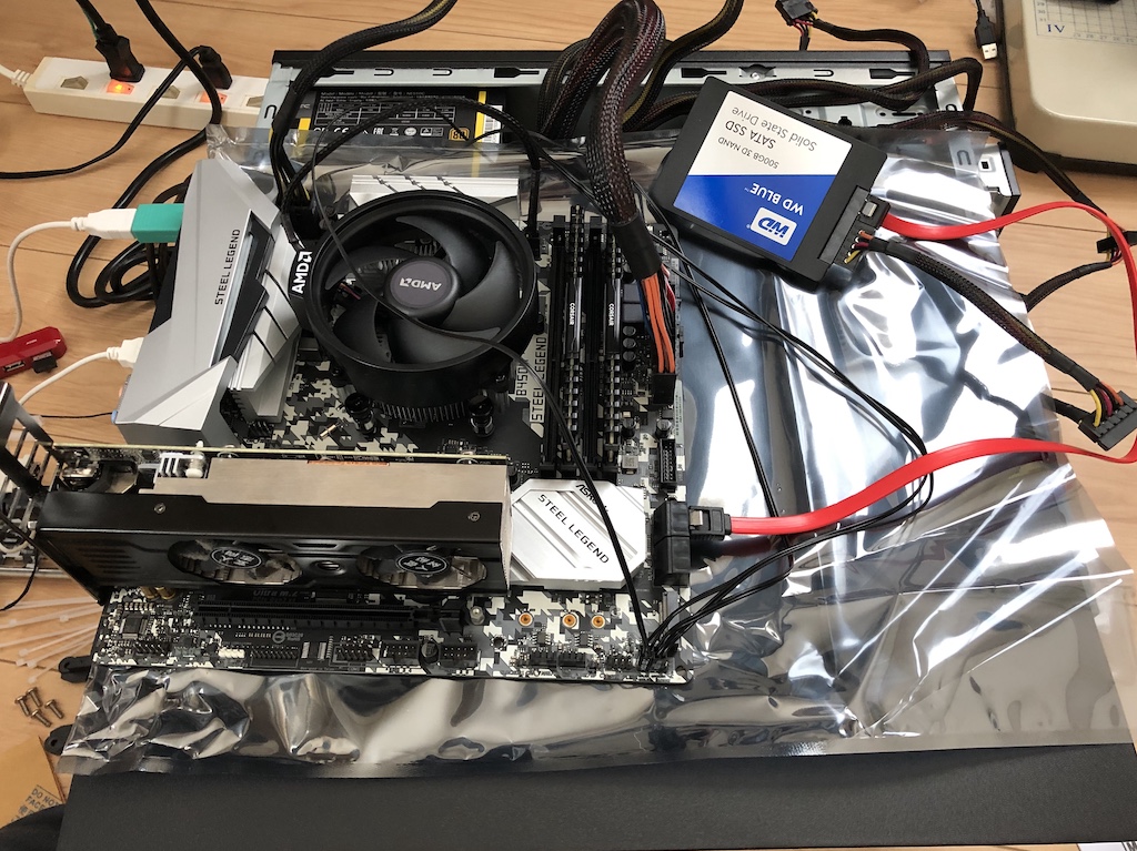 PCケースに設置する前に全て設置して動作確認してみるということをやってます。