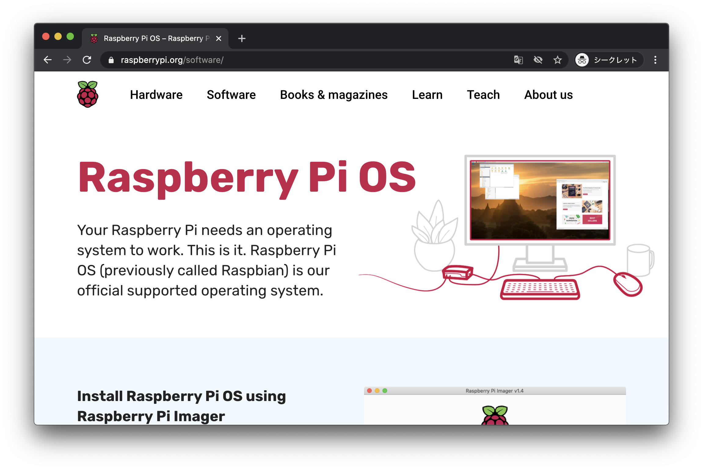 Raspberry Piの公式サイトでSoftware タブをクリックします。