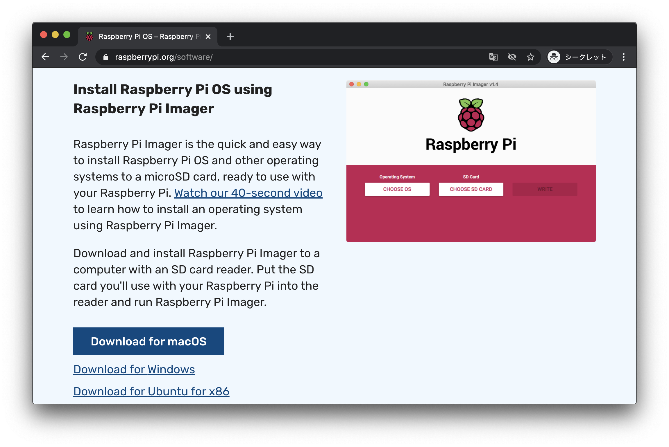 これでRaspberry Pi Imagerというツールがインストールできました。