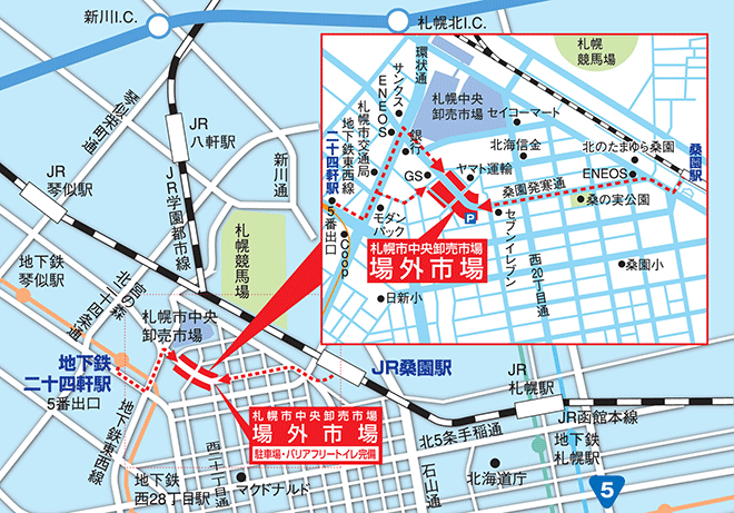 電車で福住駅 → 大通駅 → 二十四軒駅と乗り継いできました。