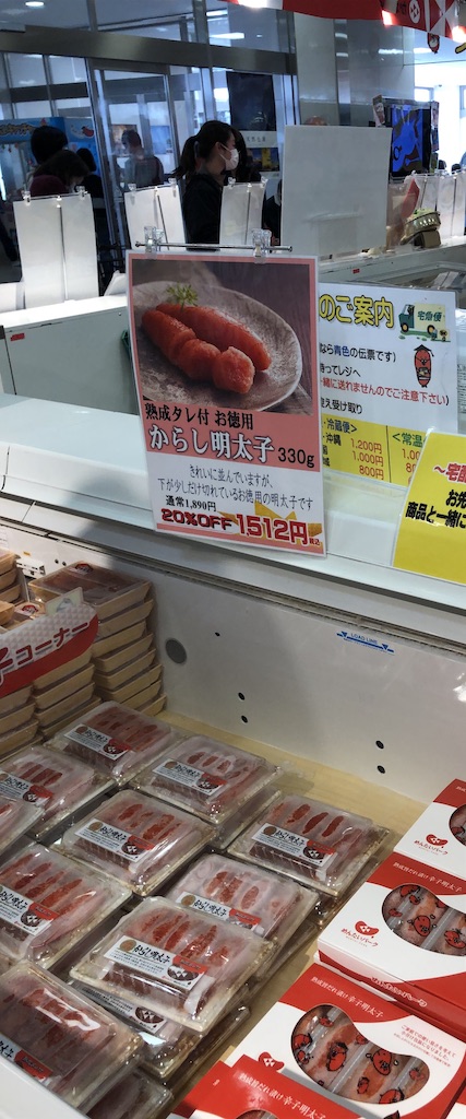 建物の中では大量の明太子が売っていました。