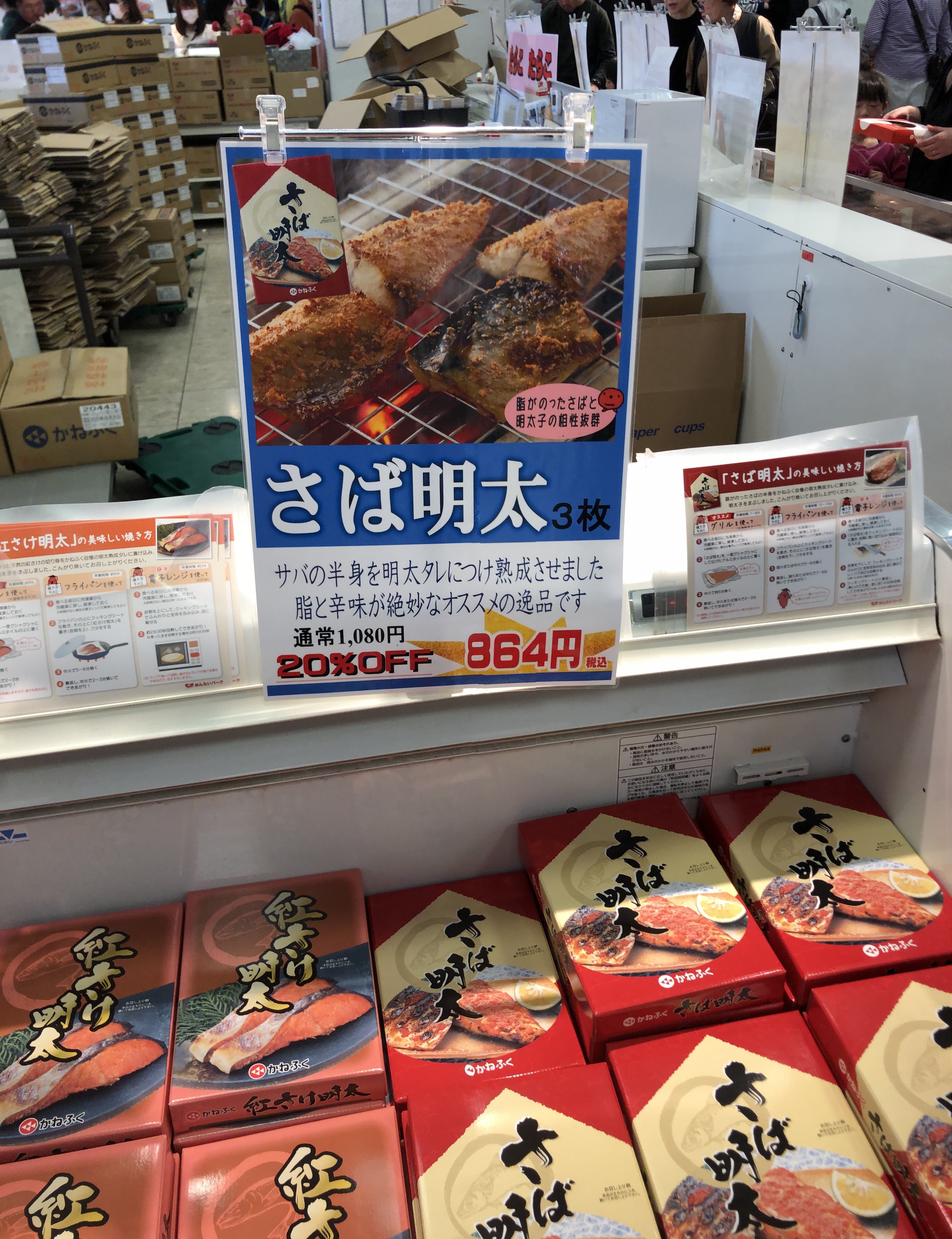 建物の中では大量の明太子が売っていました。