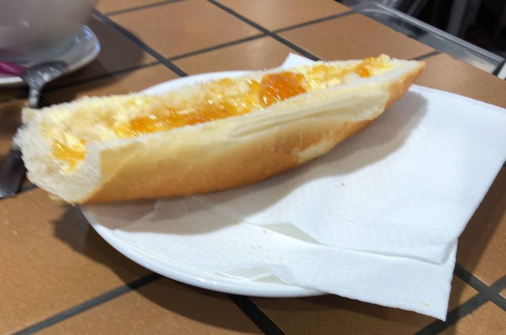 焼いたフランスパンを4等分してバターとママレードが塗られたものが来ました。