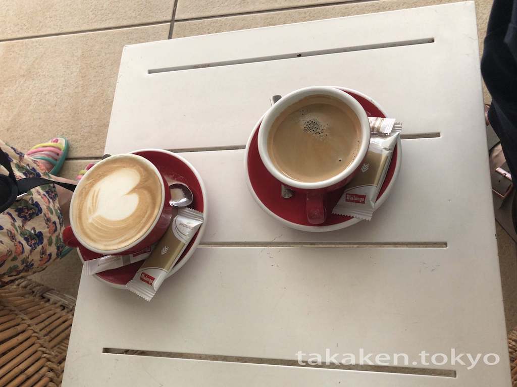 とりあえず靴が濡れたのでカフェで座ってジュースを飲むことに。